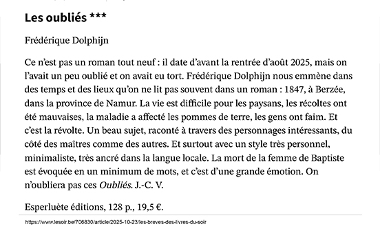 On ne saurait cependant réduire l’envergure de ce roman aux faits historiques évoqués ou aux débats qu’il soulève. Les oubliés, c’est avant toute chose un texte porté par une écriture forte qui colle à la peau de son contenu. Pas d’emphase pour dire la misère ou la dureté du travail, mais des phrases serrées aux mots choisis et pétris d‘une poésie simple, qui bouscule doucement l’ordre des mots et mobilise des images et termes propres au monde agricole ici aussi célébré. Un léger décalage langagier plein de charme qui participe pleinement du voyage vers un temps qui méritait d’être revisité. L’oubli s’en trouve joliment conjuré … et le lecteur comblé.