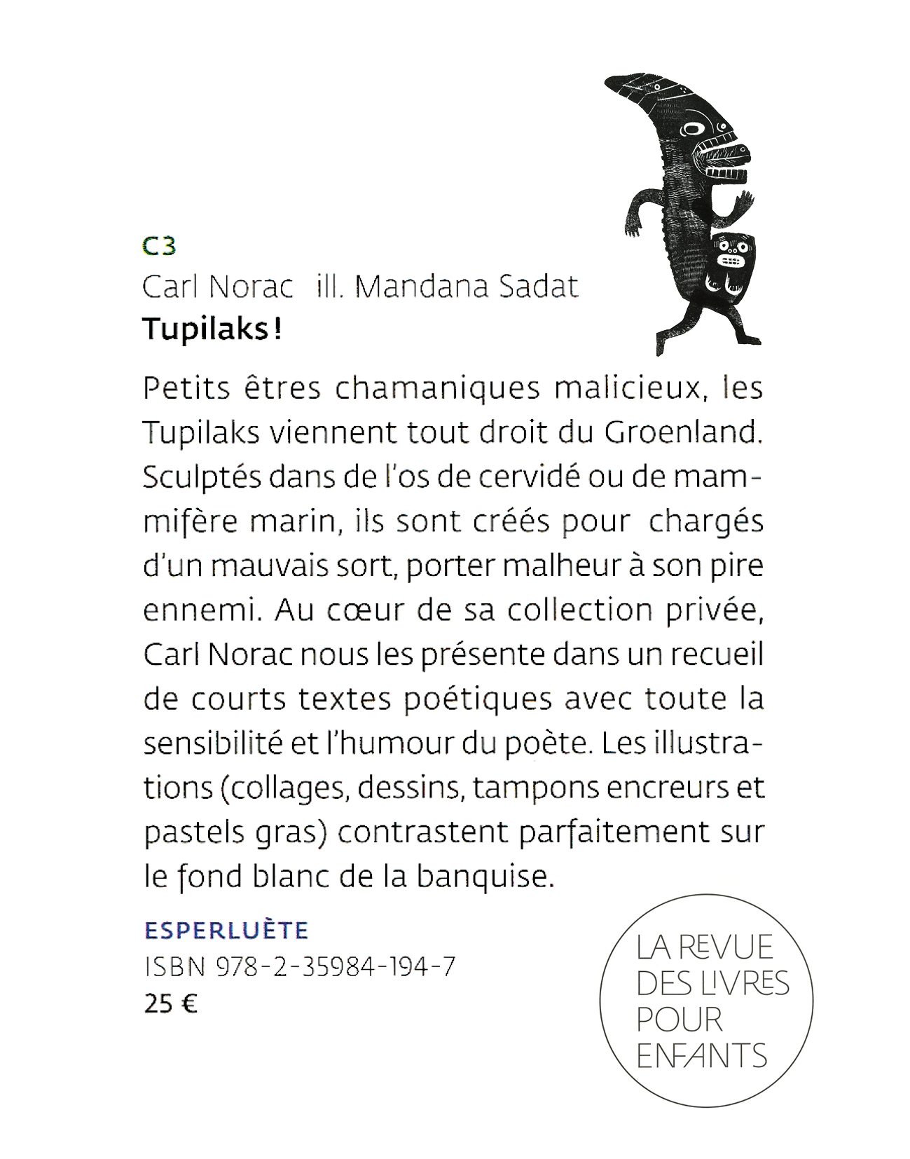 L'album Tupilaks fait partir de la sélection Poésie 2025 de la Revue des livres pour enfants !