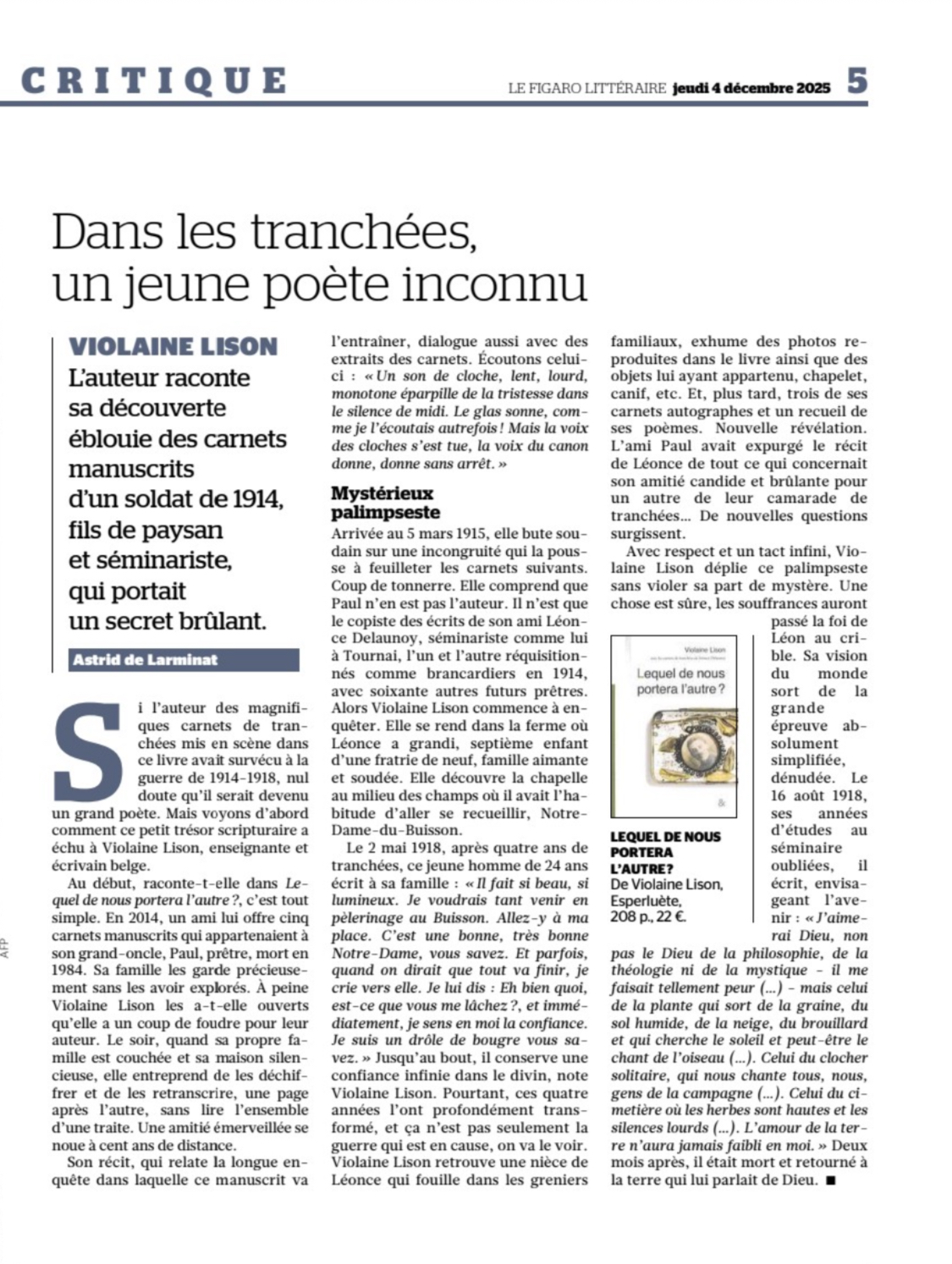 Astrid de Larminat, Le Figaro Littéraire, 4 décembre 2025